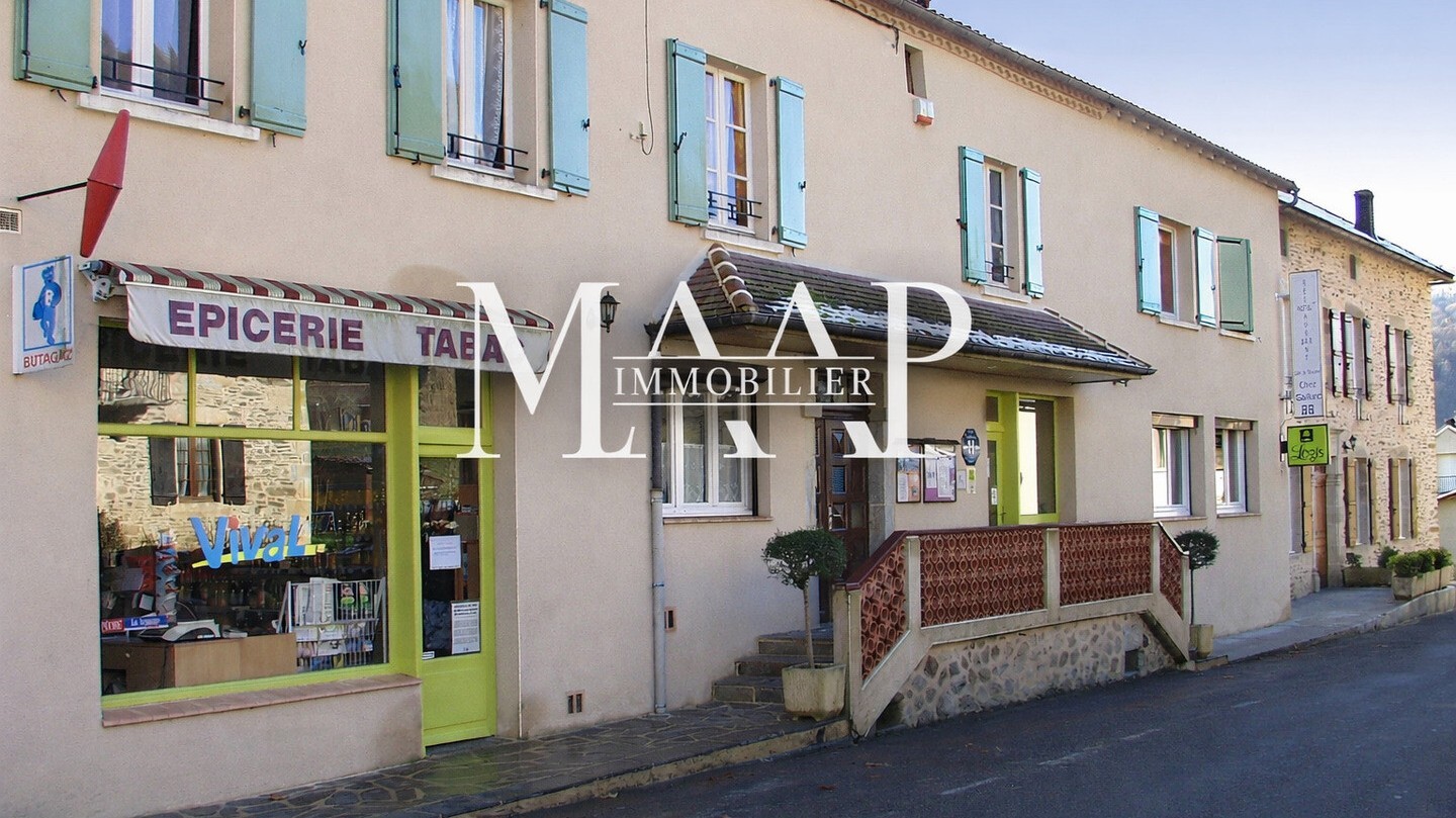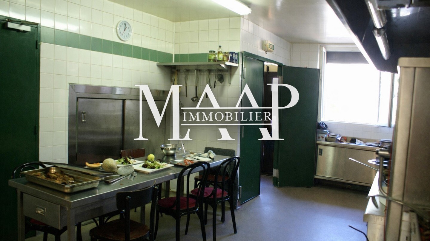 Salles de restauration, bar, cuisine professionnelle, ancienne épicerie, réserves, sanitaires